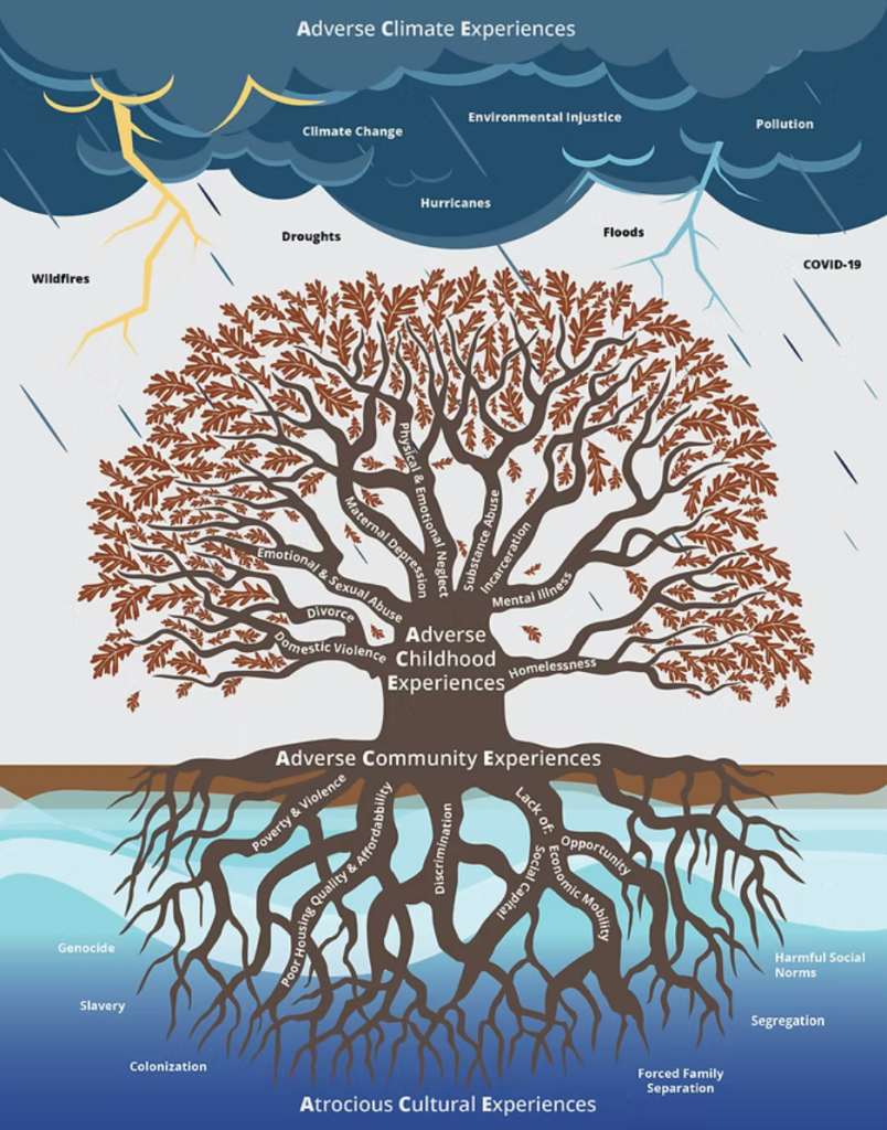 The great news is that this 12-step program now exists, and I believe it can be a tremendous accelerator, comfort, teacher, friend, and compassionate partner in recovery from all types of ACEs, from the original 10 in the 1998 Kaiser Permanente and CDC (Centers for Disease Control and Prevention) study, to the more expansive and inclusive ones shared in this brilliant illustration created by the North Carolina Partnership for Children.